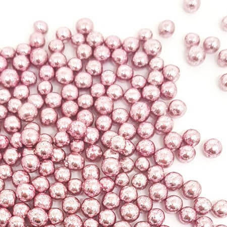 סוכריות לקישוט דגם פנינים ורוד מטאלי 3 מ"מ